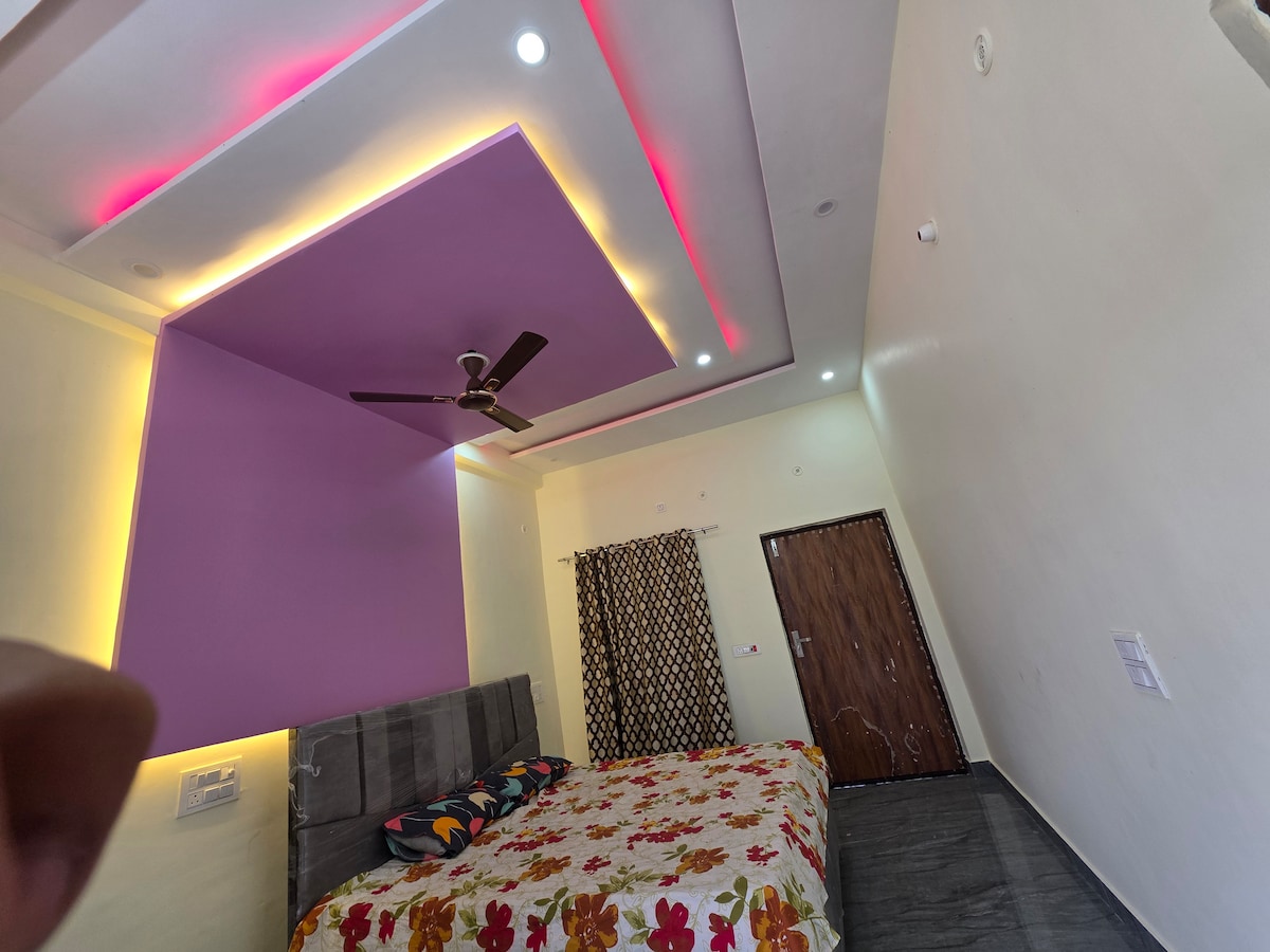 Découvrez la paix dans notre studio confortable sur l'autoroute Delhi-Agra... À quelques minutes de Banke Bihari, ISKCON et Prem Mandir... Idéal pour les chercheurs spirituels, les petites familles, les couples mariés ou les étudiants... Espace calme, propre et sécurisé avec lit double, canapé, salle de bain privée, kitchenette, TV et climatisation... Services de tiffin et de taxi à proximité (en supplément)... Tous les temples à moins de 5 à 6 km... Profitez d'une retraite divine et chaleureuse loin de la circulation et de la foule, où le charme serein de Vrindavan vous enveloppe. 🌸🙏