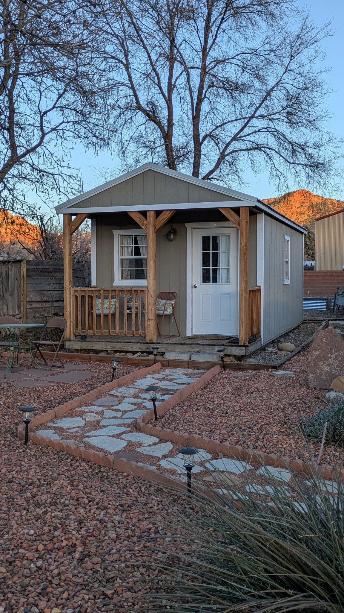 NOUVEAU! Alliant attrait rustique et commodités modernes, cette Tiny House offre une perspective innovante sur l'hébergement de vacances! Notre logement est situé sur l'une des propriétés les plus impressionnantes autour de la région de Zion/Bryce! 14 acres de pommiers et de terres agricoles entourés de sommets de montagne à couper le souffle juste à côté de l'autoroute 89. Nous sommes à moins de 5 à 15 minutes des épiceries et des restaurants et idéalement situés à seulement 25 minutes du parc national de Zion et à 55 minutes du parc national Bryce Canyon.