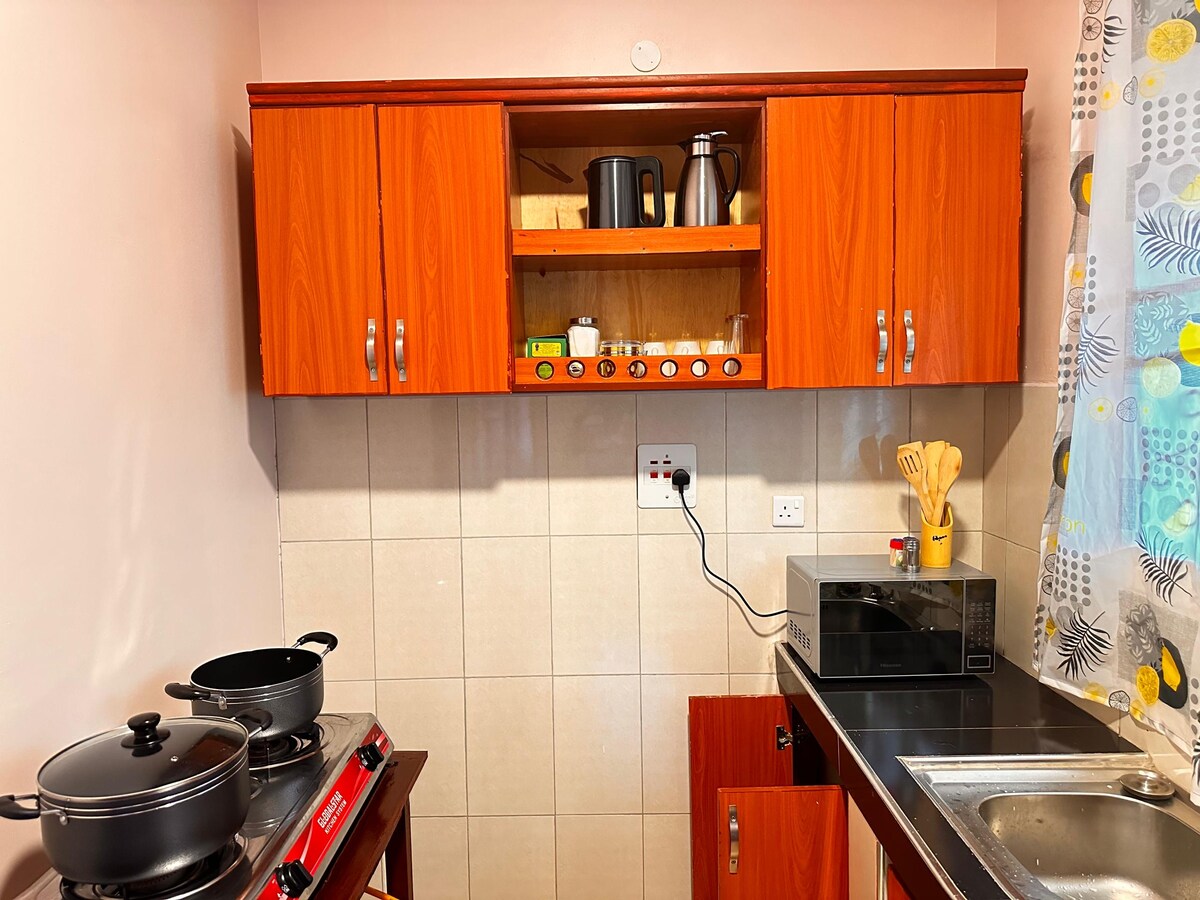 Relax with the whole family at this peaceful place. Turked away from the town hustle and bustle wake up to the sound of birds, fresh air and a calm serene space. Feel free to stay indoors and play board games, watch your favorite movie or enjoy the outdoors playing volleyball and lay on the pouch to watch the beautiful sunset. Wind down the day at the fire place listening to some cool music, have a karaoke night or simply fall in the sofa for a Netflix movie night. Next day hike Sipi falls!