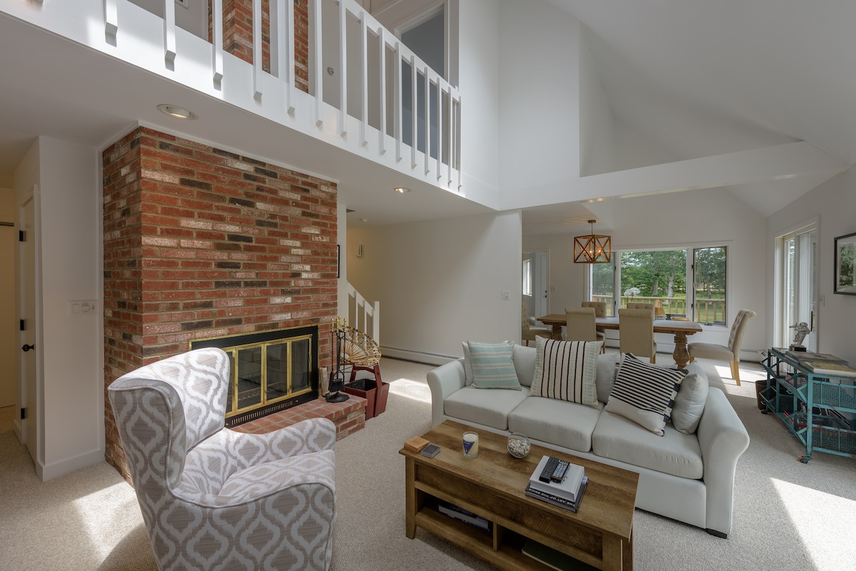 Ce condo de style ranch de 1550 pieds carrés avec loft a été construit en 2018 et est situé sur un grand terrain joliment aménagé avec beaucoup d'espace à l'intérieur et à l'extérieur. Il dispose de 3 chambres et peut accueillir 8 personnes. Il se trouve à 20 minutes à pied du centre du village d'Edgartown, à 10 minutes à pied de la ferme Morning Glory et à seulement 10 minutes en voiture de South Beach ! Tout le mobilier, les lits, les draps et les appareils électroménagers sont neufs. Lisez nos commentaires ! Immaculé !