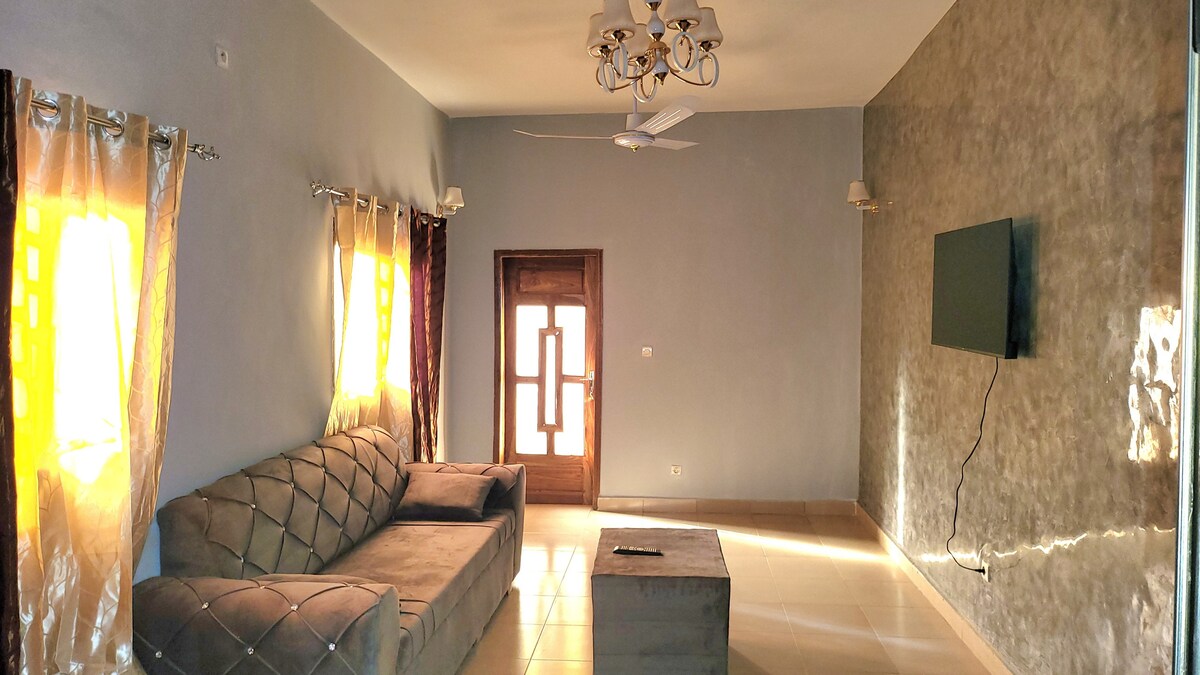 APPARTEMENT MEUBLÉ 2 PIÈCES À BACODJICORONI GOLF AVEC PANNEAU SOLAIRE RUE CALME ET PROXIMITÉ DES COMMERCES, SERVICES DE SÉCURITÉ 24H/24H,WIFI, EAUX ET DÉCODEUR CANAL+ SONT DISPONIBLES 24H/24H GRATUITEMENT.