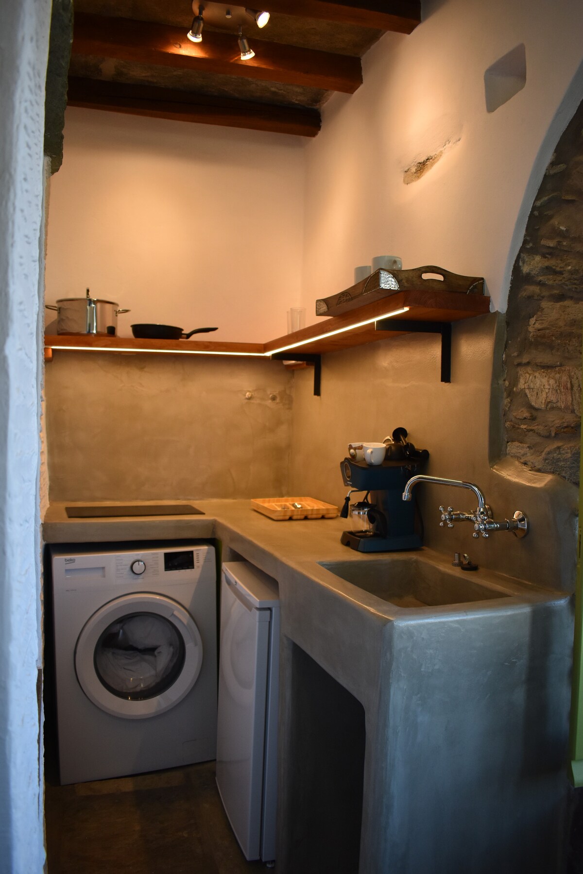 Une maison cycladique qui équilibre entre le traditionnel et le moderne, idéale pour des excursions pour deux personnes. Il combine le blanc avec la pierre de Tinos, créant une atmosphère de détente et d'insouciance, grâce à son esthétique minimaliste. Il est à 20’ - en voiture - du port de Tinos et à 10’ - en voiture - de la plage de Kolymbithra, et son emplacement au centre de l'île en fait le point de départ d'une exploration prometteuse !