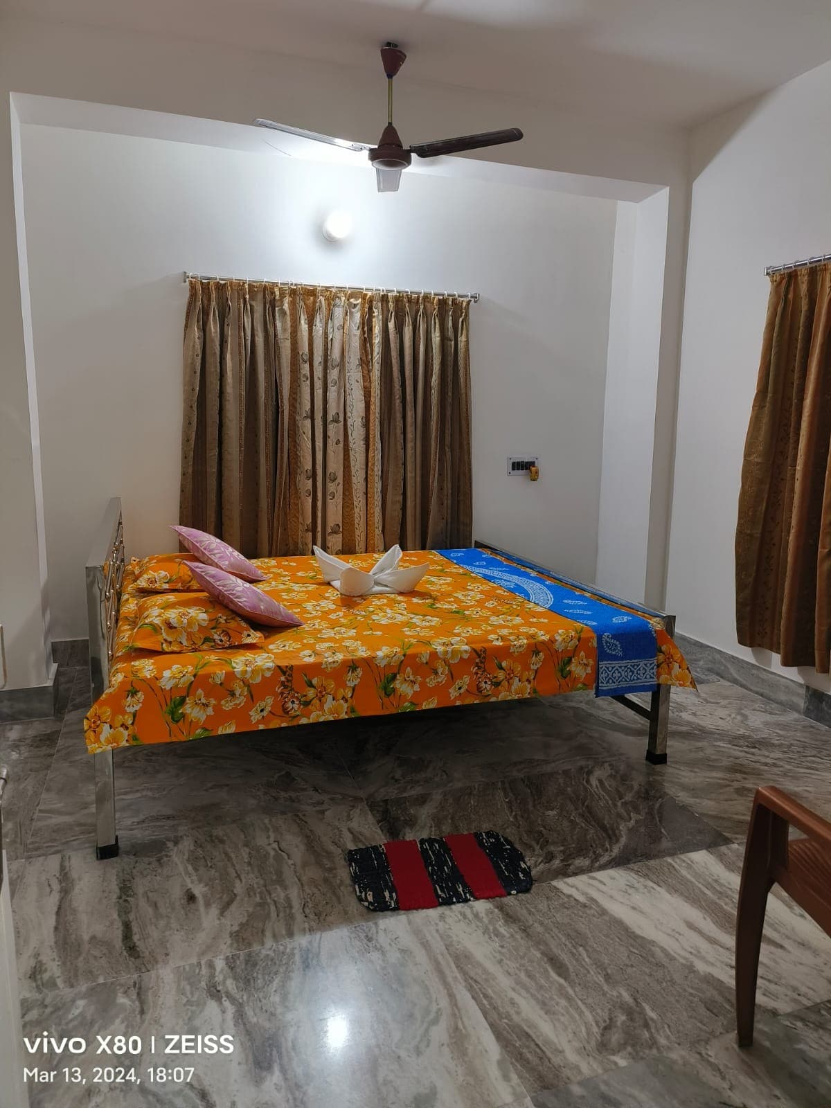 Namaste! Breezy & Budget-Friendly Studio in Mayapur Simplicity meets connectivity in this airy studio apartment, located just a 12-15 minute walk (900m) from ISKCON. Designed for solo travelers, backpackers, or students, this space offers the essentials: a comfortable place to sleep, excellent ventilation, and high-speed WiFi. It is a perfect economy base for those who plan to spend most of their day at the temple and need a quiet, affordable spot to sleep and work.