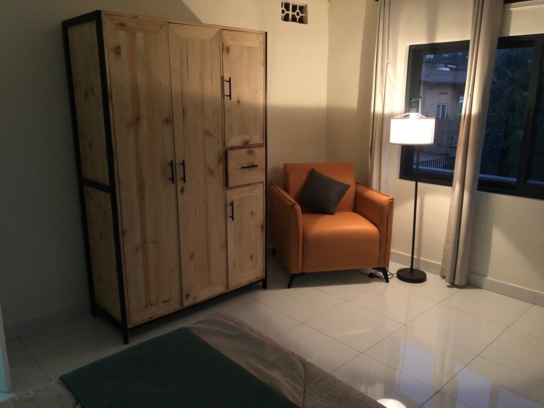 Il s'agit d'une maison moderne confortable et entièrement meublée, avec un salon ouvert et une cuisine bien équipée. Il dispose également de deux chambres king size et d'un futon avec une terrasse privée et une vue sur Kigali. Elle dispose d'une piscine et d'une salle de sport moderne. Les services publics comprennent une CONNEXION WI-FI par fibre optique, une télévision, une machine à laver (laveuse et sécheuse), une sécurité 24h/24 et un garage privé. Il est interdit d'apporter des animaux de compagnie et de fumer Des séjours longue durée sont disponibles et peuvent être discutés.