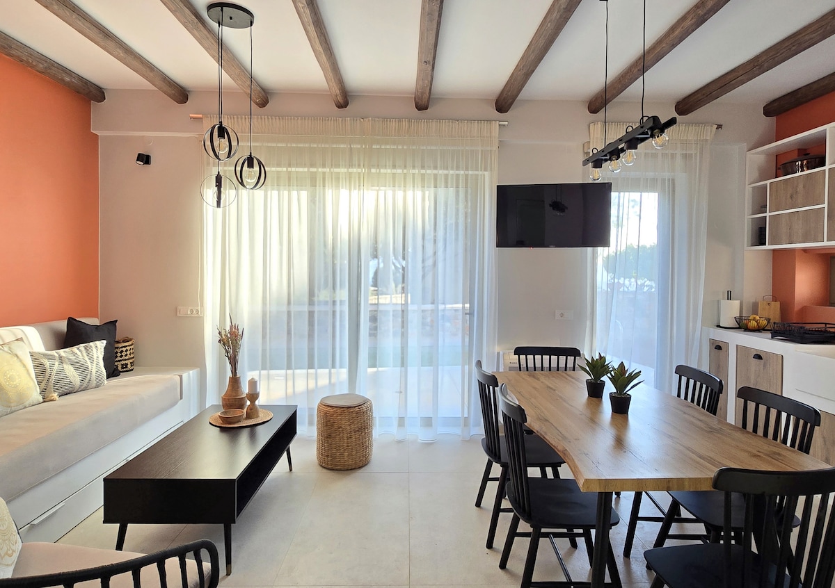 La maison G&M dispose de 3 grandes chambres et peut accueillir 6 personnes et une autre sur le canapé (3,18 cm). Vous trouverez également deux salles de bains confortables et un WC pour répondre aux besoins immédiats de tous les locataires. Elle dispose d'un balcon pour le café du matin avec vue, mais aussi d'une grande cour avec un coin repas pour dîner ou passer du temps avec des amis. L'espace unique, le salon et la cuisine sont suffisamment confortables pour passer la majeure partie de la journée à se détendre devant la grande télévision ou à lire un livre.
