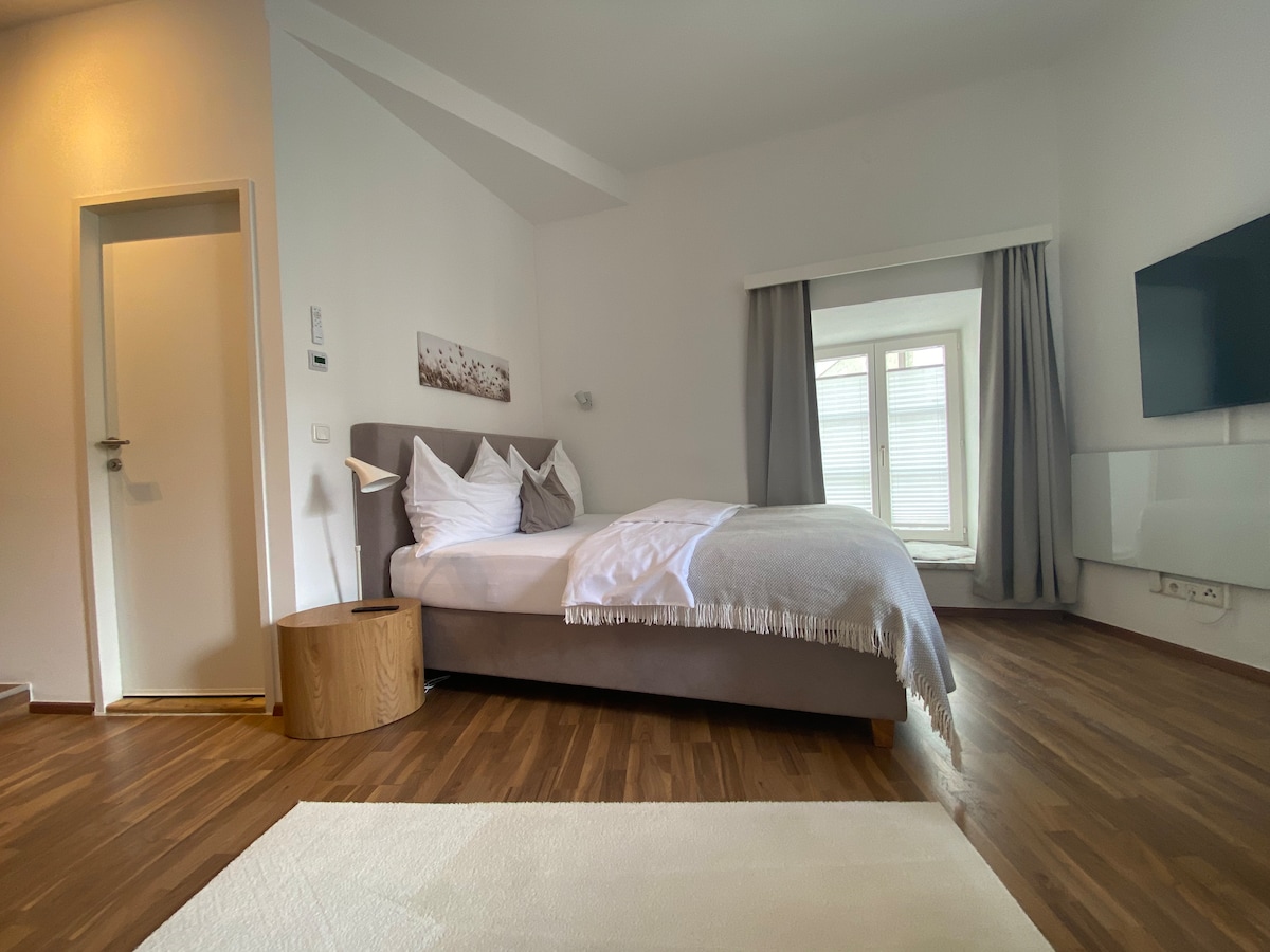Notre studio se trouve au premier étage d'une maison de la vieille ville, au début de la zone piétonne de Hallein. Des magasins, des boulangeries, des cafés, des glaciers et des restaurants avec de beaux jardins se trouvent pratiquement devant la porte. La ville médiévale de Hallein, connue pour son sel et ses celtes, est considérée comme la « petite sœur » de la ville culturelle de Salzbourg, qui est accessible en S-Bahn en env. 20 minutes.