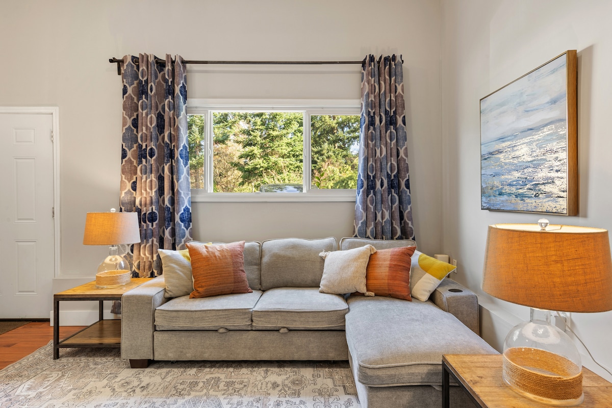 Restez simple dans ce studio paisible et central, confortable et calme, au cœur de Kirkland. Cet appartement studio est équipé d'une nouvelle kitchenette complète, d'une salle de bain de luxe et d'une connexion wifi dédiée ultra rapide avec un petit patio extérieur. Il est niché dans un quartier calme du centre-ville de Kirkland, à proximité de parcs, de restaurants, de magasins, de sentiers pédestres et du magnifique lac Washington. Avec un accès rapide aux principales autoroutes, il est à 20 minutes en voiture du centre-ville de Seattle et de la ville huppée de Bellevue.