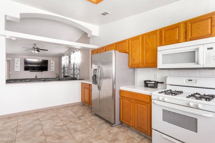 Idéalement situé dans un quartier très recherché, sûr et calme ! Profitez de tous les aspects de la maison de campagne parfaite, avec une cuisine bien équipée, des draps confortables et tout neuf ! Détendez-vous au bord de la piscine, jouez au ping-pong ou profitez simplement du barbecue sur le patio de fête ! Vous apprécierez toutes les commodités d'un bureau à domicile, d'une connexion Wi-Fi et d'une télévision intelligente, sans oublier le hangar extérieur/la caverne d'homme ! Cette maison a littéralement tout ce que vous pourriez vouloir ! Nous sommes des hôtes locaux et toujours joignables par téléphone !