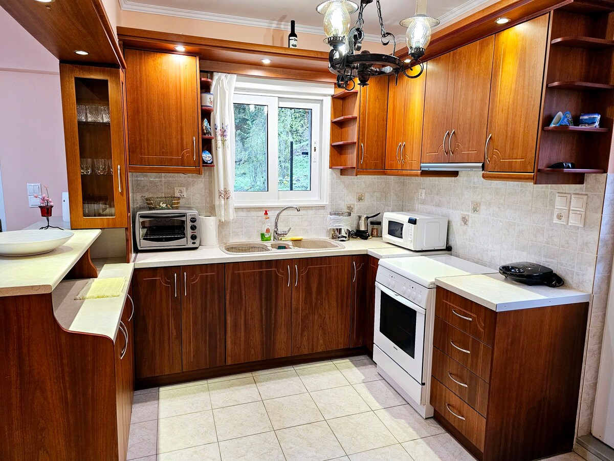 Détendez-vous en famille ou entre amis dans ce logement paisible et isolé. Belle maison simple et chaleureuse adaptée à une petite ou longue escapade. À 2 min de l'épicerie traditionnelle À 9 km du supermarché et du kiosque les plus proches À 31 km de la ville de Kalavryta Interdiction de fumer, de faire la fête ou d'animaux de compagnie Communication directe avec l'hôte !