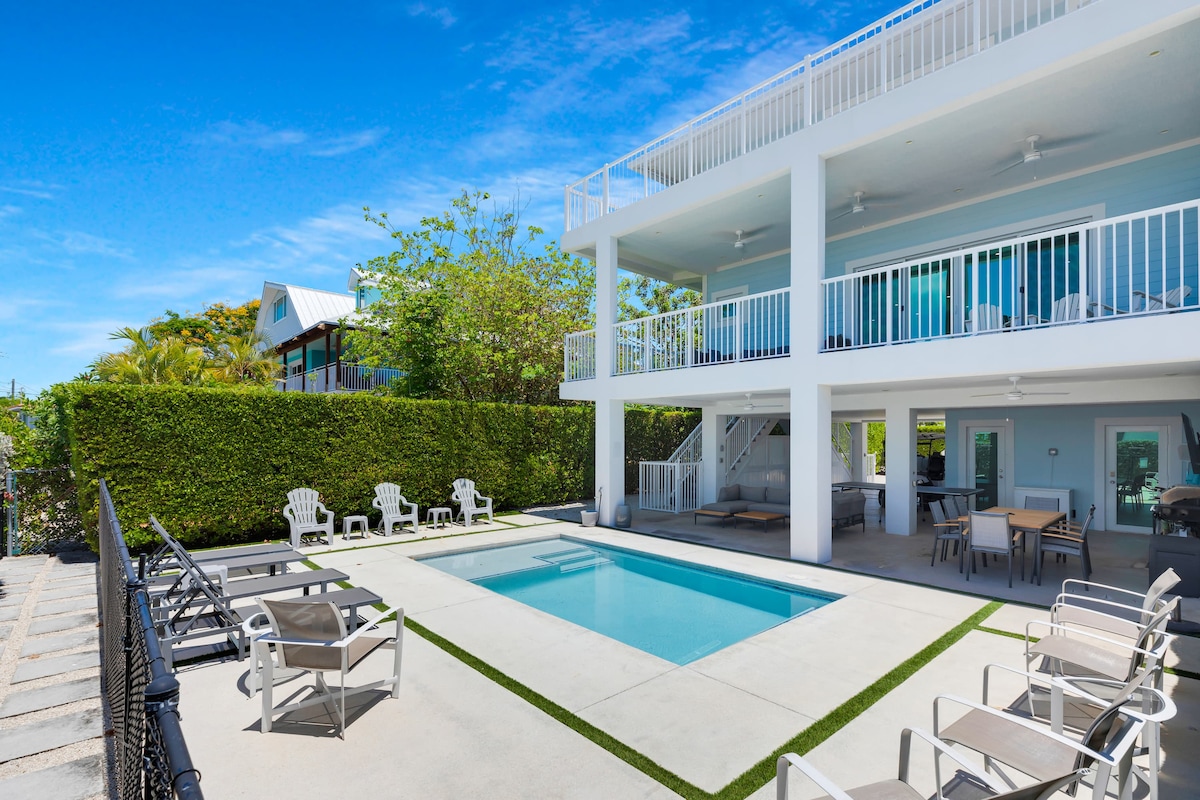 Frais et propre ! ! 2 planches de paddle et 6 vélos ! ! Notre logement est situé à l'extrémité sud de la 9e rue, ce qui en fait une promenade facile jusqu'à Sunset Beach, Key Colony Inn et accès au « Members Only » Cabana Club avec piscine, plage et restaurant. Nous avons tout ce dont vous aurez besoin pour de merveilleuses vacances ! J'ai besoin de quelque chose de spécial, il suffit de demander ! Le quai de 37,5 pieds avec branchement, station de nettoyage des poissons, eau et lumière verte des poissons sous-marins ne manqueront pas de plaire à la ligne et d'équipage ! KCB est le JOYAU des Keys FL ! !