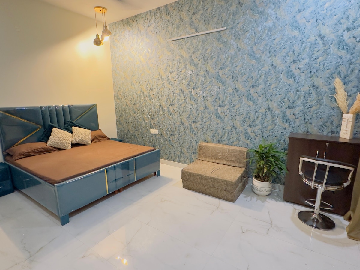 Studio confortable à JTPL, secteur 115, Mohali, parfait pour les familles, les couples (mariés) ou les voyageurs. Spacieux, avec Wi-Fi, TV, cuisine et espace de travail dans un emplacement sûr et privilégié. Réservez maintenant ! Avertissement : - Ne convient pas aux couples non mariés. Cette catégorie ne sera pas autorisée à entrer dans les locaux, même si la réservation est confirmée. Veuillez lire la note avant de réserver pour éviter tout désagrément.