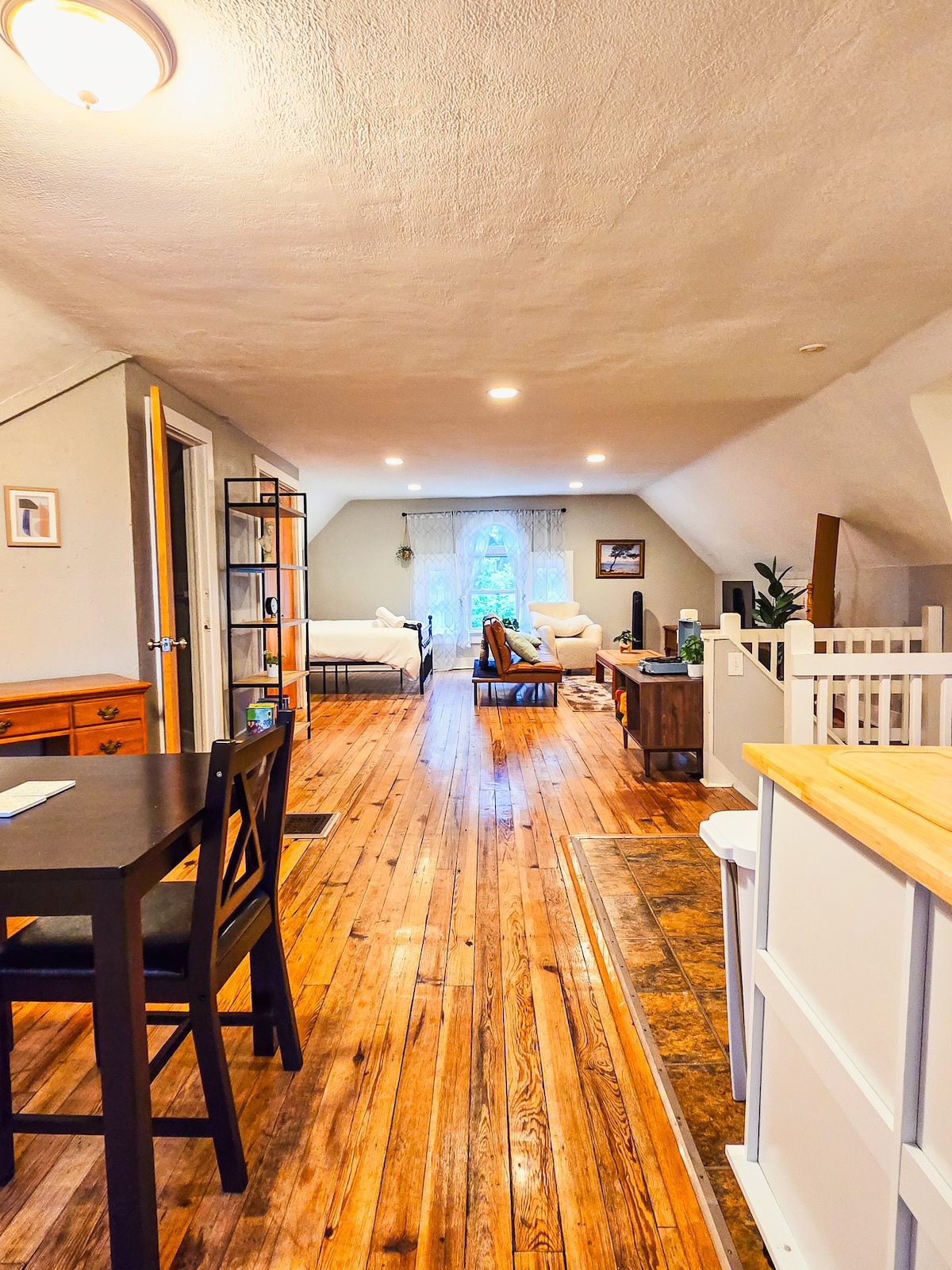 En 1946, mes parents vivaient ici, et utilisaient l'étage comme cabinet vétérinaire de papa. Je l'ai rénové en utilisant leurs portes, éviers et œuvres d'art, un lit et de la literie fabriqués par les Amish, et j'ai inclus des savons et du café fabriqués localement. Mes parents étaient simples, paisibles et détendus, et j'espère que vous le ressentirez pendant votre séjour. Ce bâtiment unique dispose d'une chambre, d'une salle de bains, d'un petit coin salon avec un canapé convertible et d'une cuisine. Il est situé à seulement quelques minutes du centre-ville de Berlin, des fermes locales, des boulangeries et bien plus encore !