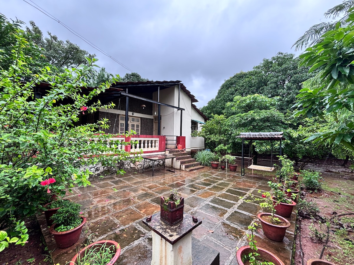 Évadez-vous au 1970 – un bungalow confortable 1BHK à thème vintage niché dans le village serein de Phanshi près du fort de Rajgad. Entourée de nature et de murs de pierre, elle allie minimalisme bohème et charme rétro. Parfait pour les couples, les familles, les groupes d'amis ou les créatifs en quête de paix. Profitez des couchers de soleil, des matins tranquilles et du calme de la campagne.