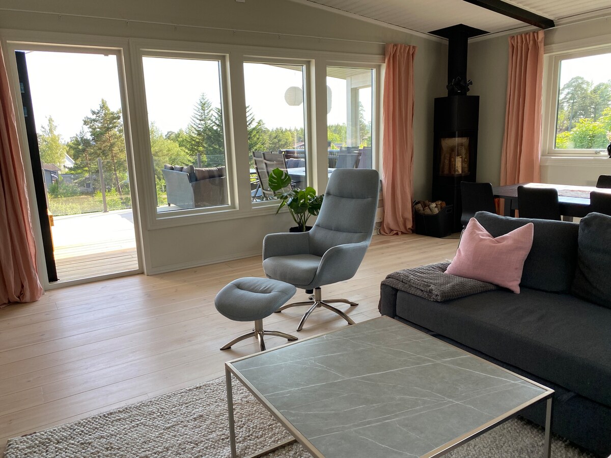 Détendez-vous dans cet espace unique et tranquille. À seulement 10 minutes en voiture du centre ville. La maison est d'environ 65 m ² de grande taille et nouvellement construite, mais avec un style véritablement rural. Vous trouverez ici une cuisine entièrement équipée avec la plupart des choses dont vous avez besoin. Une petite salle de bain intelligente avec toilette et douche. Buanderie avec sèche-linge. Chambre double spacieuse ainsi qu'un lit double dans la salle de télévision. Ici, vous vivez avec la forêt juste au coin de la rue et deux réserves naturelles avec plusieurs sentiers de randonnée et des lacs d'oiseaux à proximité. Une seule nuit sur demande pendant l'été.