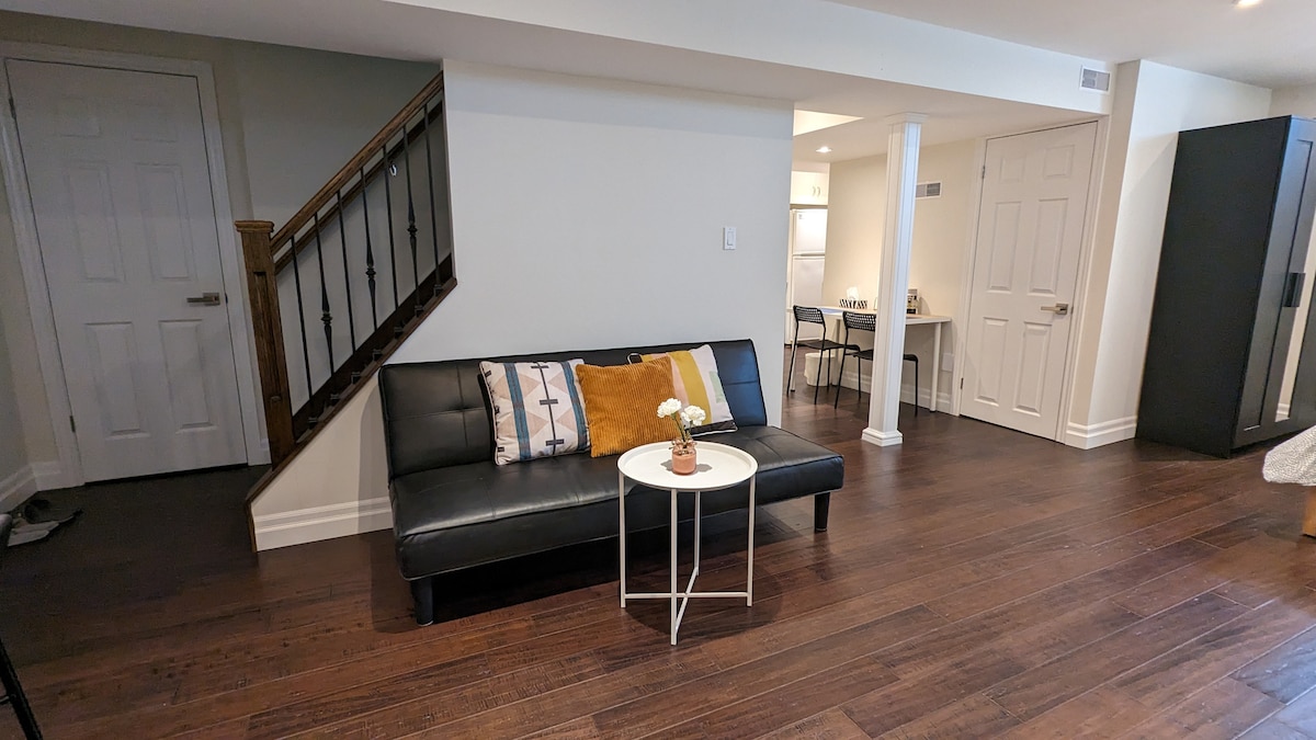 Un appartement de sous-sol à Richmond Hill. Cet appartement ensoleillé dispose d'une abondance de lumière naturelle qui traverse les nombreuses grandes fenêtres. Il dispose d'une cuisine complète, d'une buanderie complète avec lave-linge et sèche-linge, d'une place de parking désignée pour une voiture et d'un accès Wi-Fi gratuit. Parfait pour les couples ou les petites familles, cet appartement peut accueillir confortablement deux adultes et jusqu'à deux enfants.