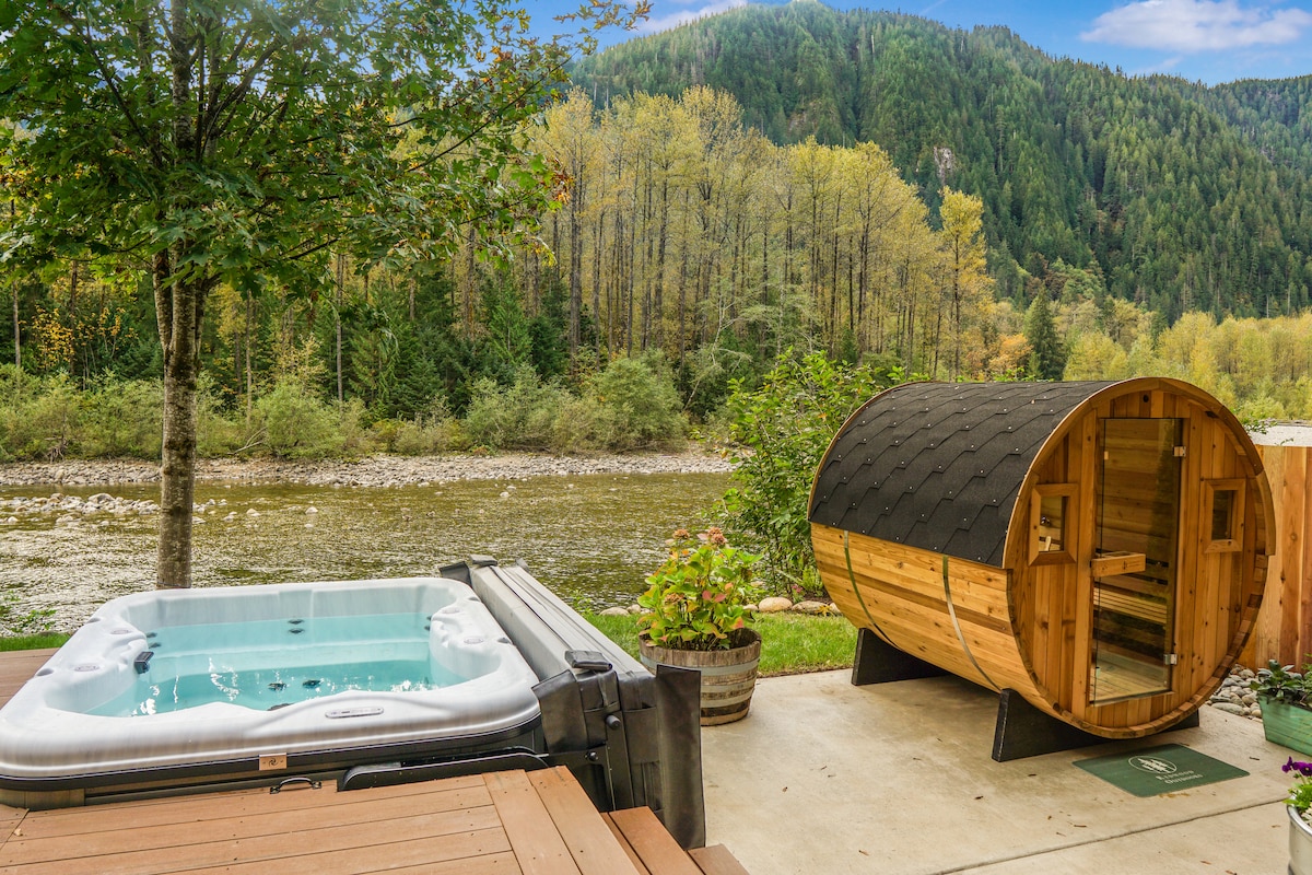 Welcome to North Zen by Riveria Stays — a magical riverfront escape tucked along the Snoqualmie River. Surrounded by ancient evergreens, this rustic boho cabin invites you to slow down and savor the moment. Soak in the private hot tub under the stars, unwind by the gas fireplace, or settle into Adirondack chairs on the riverbank as the gentle sounds of the water soothe your spirit. Let the beauty and charm of our river cabin transport you to a place of peace, wonder, and timeless serenity.