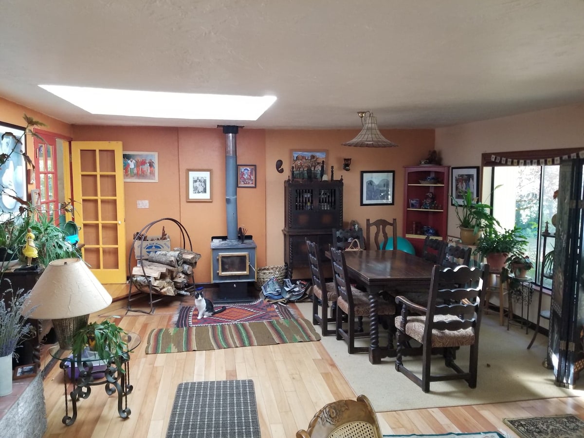 Entouré de pâturages, il se trouve à deux pas de la rivière Mad pour les baignades et les promenades. La brasserie Mad River se trouve à moins d'un mille en remontant la route. D'excellentes possibilités de VTT se trouvent à 1 mile. À 15 minutes en voiture, vous trouverez la ville branchée d'Arcata, entourée de séquoias et de randonnées ainsi que d'un littoral majestueux. Les dimanches de 10 h à midi, nous organisons une danse extatique familiale dans le studio adjacent à l'appartement. Attendez-vous à de la musique à ce moment-là. Rejoignez-nous ! Les cours de yoga publics ont lieu le mardi et le samedi matin.