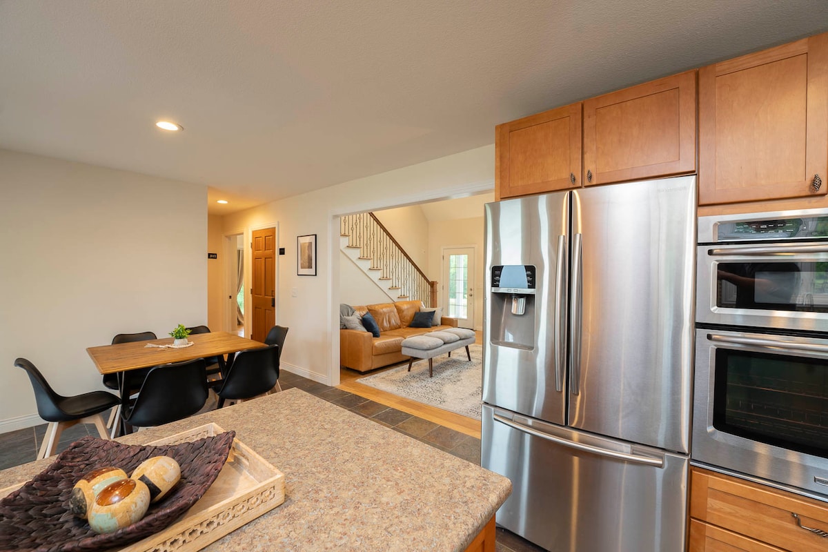 Détendez-vous avec toute la famille dans cette maison paisible, spacieuse et privée dans un quartier calme et verdoyant. À moins de 1 mile de l'I-70 et à 4 miles du centre-ville/campus/MU et des hôpitaux Boone. Convient aux animaux de compagnie et aux enfants avec une grande cour arrière clôturée en toute sécurité et un patio en ciment avec foyer, barbecue au charbon de bois, mobilier d'extérieur et auvent en toile. Intérieur moderne et confortable avec 40 peintures originales du propriétaire et une cheminée électrique.