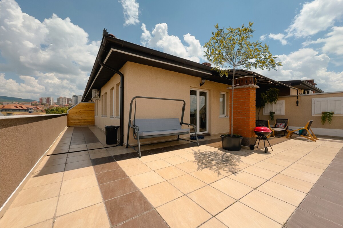 Situé dans le centre de Skopje dans une rue sans circulation, ce loft surplombe la montagne Vodno et se trouve à seulement quelques minutes à pied de la place de la ville. Le quartier est jeune/tendance, à proximité de la « rue bohème », de nombreux restaurants macédoniens authentiques et du bus allant à « Matka ». Soigneusement conçu à l'aide de matériaux de haute qualité, de meubles et d'art contemporain, cet appartement dispose d'une lumière vive, d'un espace de travail désigné, d'un espace de vie et d'un coin repas ouverts et d'un balcon avec vue panoramique.