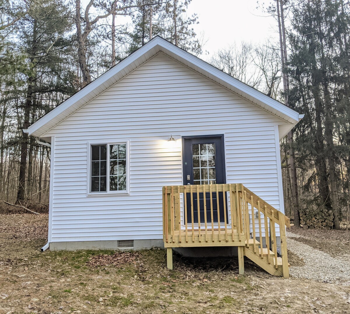 Ce chalet en A est unique en son genre et a été entièrement rénové et mis à jour. Un cadre parfait pour se détendre sur le patio près du feu de camp ou se détendre sur la terrasse suspendue et regarder le soleil se lever tout en sirotant votre tasse de café préférée. Un endroit idéal pour toute votre famille, votre groupe d'amis ou juste une escapade romantique pour deux. Situé dans la tranquillité de la nature et complètement entouré de bois et pourtant à seulement quelques minutes de la ville. (Mt. Vernon OH.)