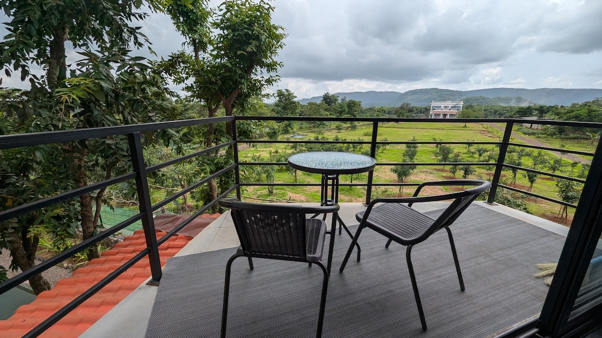 Plongez dans la splendeur de la nature au Parsley Loft, notre loft confortable niché dans les contreforts du majestueux Fort de Torna. Perché au bord d'une rivière paisible, notre havre de paix écologique et élégamment conçu offre une vue panoramique à 360 degrés qui vous laissera sans voix. Située à 65 km de la ville de Pune, notre retraite offre une évasion tranquille de l'agitation et vous permet de ne faire qu'un avec la nature.