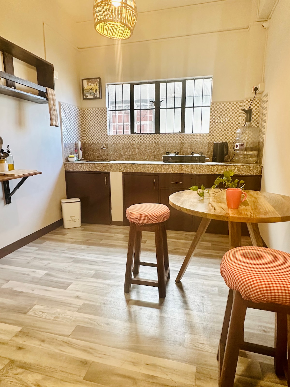 Perché au 4e étage d'une charmante maison, ce studio privé sur le toit offre une retraite paisible avec une vue panoramique imprenable sur les collines de Shillong. Parfait pour les voyageurs en solo, les couples ou les petites familles, l'espace garantit une intimité totale et une atmosphère chaleureuse pour se détendre. Un studio lumineux et aéré avec un lit king size, une kitchenette bien équipée et une salle de bain moderne avec eau chaude 24h/24 et 7j/7. Un balcon privé pour profiter de votre café du matin ou de votre thé du soir tout en vous imprégnant du paysage brumeux.