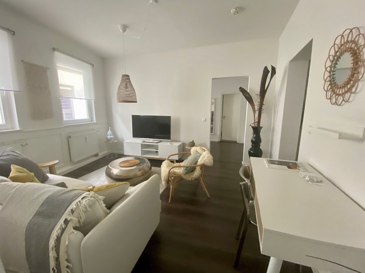 L'appartement dispose de deux chambres , chambre et salon avec kitchenette, douche et couloir. Les chambres sont chauffées au centre dans la douche avec chauffage au sol. L'appartement est non fumeur, il est situé au rez-de-chaussée et est l'une des deux unités d'habitation. L'emplacement est central dans le centre du quartier de Remseck- Aldingen. Les lignes de bus pour la ville résidentielle de Ludwigsburg ou le tramway pour Stuttgart sont accessibles en quelques minutes à pied. L'appartement n'a pas de place de parking.