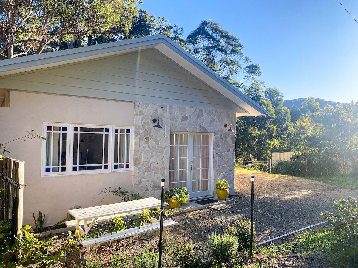 Magnifique studio de 1 lit situé sur un pâté de maisons luxuriant et calme de 2,5 acres entouré par la nature. À seulement 5 min au nord du centre de Coffs Harbour, à proximité des plages, des commerces et des attractions touristiques, mais vous pourriez être à des kilomètres ! Climatisation, ventilateur de plafond, kitchenette, barbecue, salle de bain attenante, grande terrasse, le tout avec une vue panoramique magnifique sur la vallée du bassin de Korora. Beaucoup de stationnement pour les bateaux ou les fourgonnettes et à seulement 1 min de l'autoroute. Un grand espace de détente pour les aventures en solo, les voyageurs d'affaires ou les escapades romantiques.
