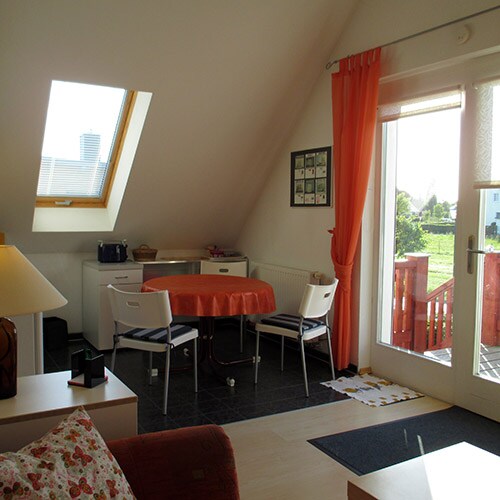 Nous recommandons l'appartement moderne de 30 m² pour 2 personnes avec enfant ou 3 adultes. Cependant, il dispose d'un canapé-lit et d'un lit d'appoint, ce qui permet d'augmenter la capacité d'une personne (sur demande). Vous y trouverez une cuisine privée, une salle de bains avec douche et un salon/chambre à coucher. Le salon avec son canapé-lit et son coin télévision offre suffisamment d'espace pour profiter de soirées détendues. La chambre à coucher est équipée d'un lit double et d'une armoire.