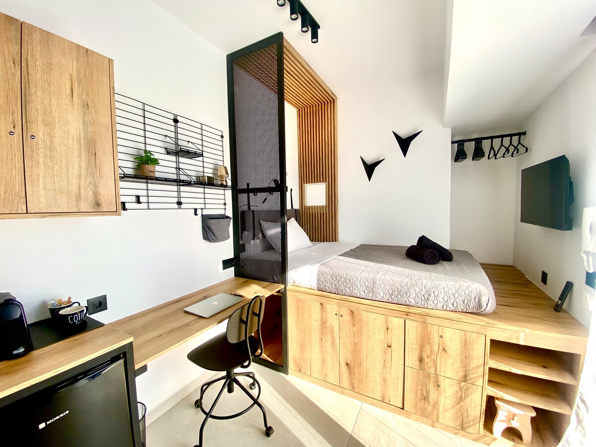 Un espace unique de 50 m ² entièrement équipé avec une cour partagée avec une piscine pour vous offrir des moments uniques. L'appartement est idéal pour accueillir jusqu'à 4 personnes, avec un salon confortable (canapé-lit) et une cuisine avec tous les ustensiles de cuisine et appareils électriques nécessaires. Le logement est situé dans un quartier calme et sûr et à 5 km des sources de Kallithea, à 6 km du centre de Rhodes et de Faliraki.