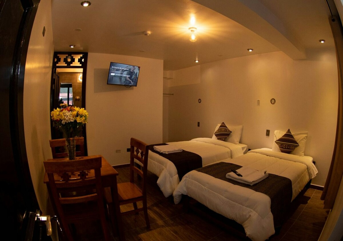 Votre chambre privée confortable assise à côté de la maison familiale est parfaite pour les couples et les voyageurs en solo. Il a une sensation rustique, propre et peut être votre sanctuaire de paix pendant que vous vous reposez dans la vallée sacrée des Incas.