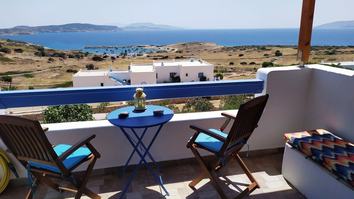 Notre bel appartement d'été est situé à chora à quelques centaines de mètres de la plage de la ville, des restaurants et cafés. Ilest soigneusement meublé avec des classiques du design et dispose d'une incroyable terrasse face à la mer, ainsi que de deux balcons. La cuisine est plus que entièrement équipée avec un assortiment d'appareils électroménagers et un lave-vaisselle. Il y a aussi une machine à laver. Nous vivons à Stockholm et visitons Koufonisi en juillet de chaque année, le reste de l'été, nous accueillons les autres pour profiter de notre logement fantastique.