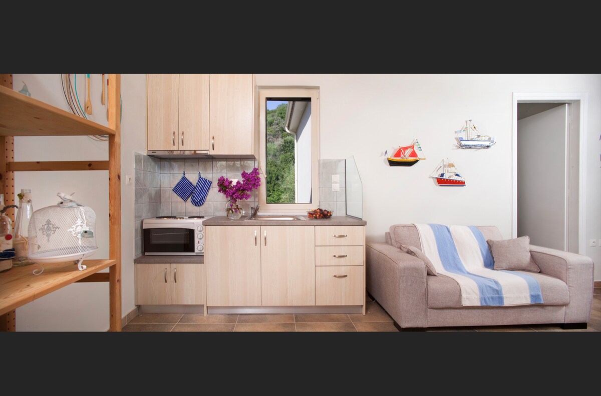 •La Casa Azul• Connue comme la maison bleue d'Arkoudi Ilia. Il offre une vue imprenable sur le bleu infini de la mer Ionienne. Un emplacement à deux pas de la mer. La maison se distingue par sa couleur bleue profonde et sa vue unique sur le rocher d'Arkoudi, la soi-disant « pierre rocheuse de Kokkoni » et en même temps le coucher de soleil romantique d'Arkoudi. Idéal pour un couple et un groupe d'amis. Il offre généreusement détente et tranquillité d'esprit.