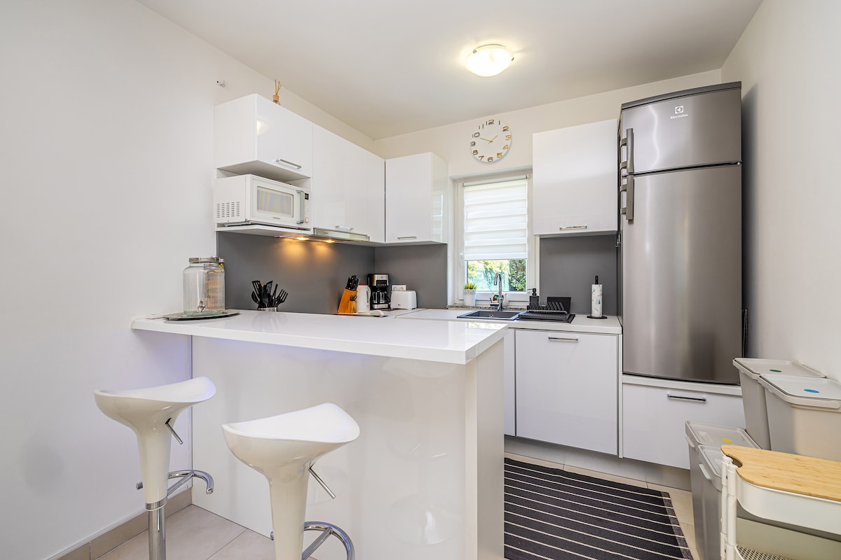 Appartement 3 à quelques pas de la piscine à débordement de la maison et d'une magnifique terrasse. Idéal pour familles ou couple avec enfants. Notre appartement dispose d'une 2 chambre à coucher élégamment meublée avec un lit double confortable, ce qui vous garantit une bonne nuit de sommeil. Le salon est équipé d'un canapé-lit qui offre un espace de couchage supplémentaire pour 2 personnes.