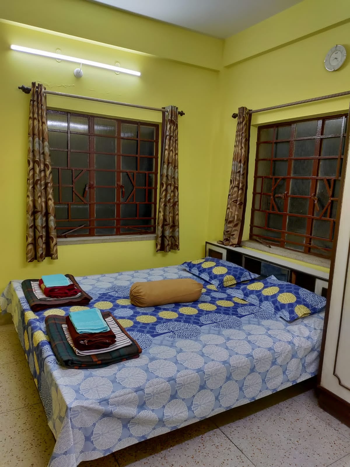 Vous pourrez vous détendre en famille dans ce logement paisible, spacieux avec terrasse attenante et balcon . La station de métro la plus proche est Khudiram et la gare la plus proche est Garia. Les hôpitaux sont également à proximité, l'arrêt de bus est l'usine Pepsi, vous pouvez commander de la nourriture par Zomato et Swiggy. Séjour sans restriction. Atmosphère familiale. Cette chambre est au dernier étage, qui est le 2e étage. Pour avoir des moments de calme, créatifs ou reposants, c'est l'endroit idéal, mais à la périphérie de la ville, avec beaucoup de verdure.