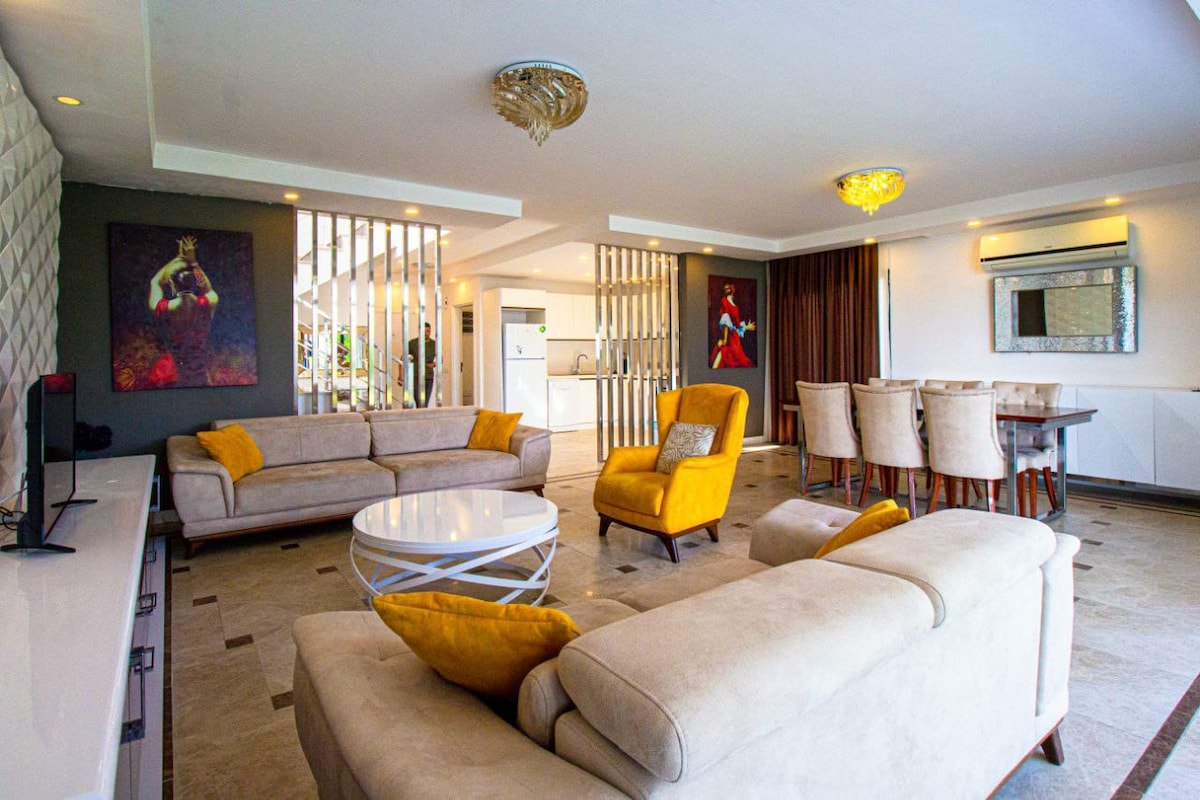 Appartement spacieux de 220 m ² avec un jardin privé de 500 m² et une piscine dans le quartier le plus sûr et le plus haut de gamme de Kusadasi. 15 min à pied du centre et de la plage. 2 chambres, 2 salons (un avec canapés-lits), 2 salles de bains (une salle de bains avec dressing). Capacité d'accueil : 6 à 8 personnes. Animaux acceptés et accessibles en fauteuil roulant. Idéal pour les familles ou les groupes à la recherche de confort, d'espace et d'intimité près de la ville et de la mer.