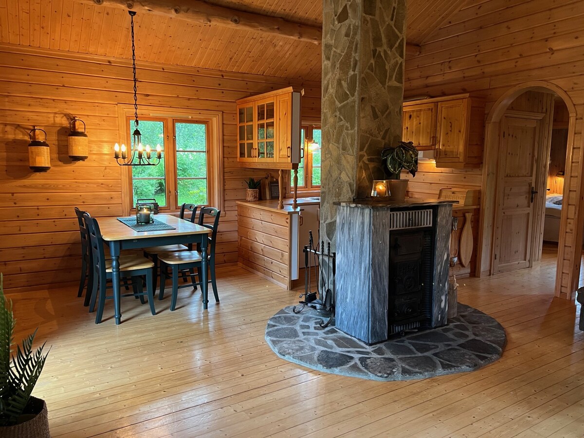 Un endroit idéal pour tous ceux qui aiment explorer la nature norvégienne, ou qui veulent simplement la regarder en se prélassant sur le canapé. La rivière qui coule juste à côté de la cabane est parfaite pour le canoë. Et vous pouvez régulièrement voir des oiseaux, des élans et d'autres espèces sauvages au bord de la rivière. Il y a aussi de bonnes zones de randonnée, des pistes de ski et des sentiers de motoneige. La cabane est située à Herringen, à 18 km du centre-ville. Nous disposons de toutes les commodités de base, Wi-Fi, TV, toilettes, planchers chauffants, lave-vaisselle et lave-linge.