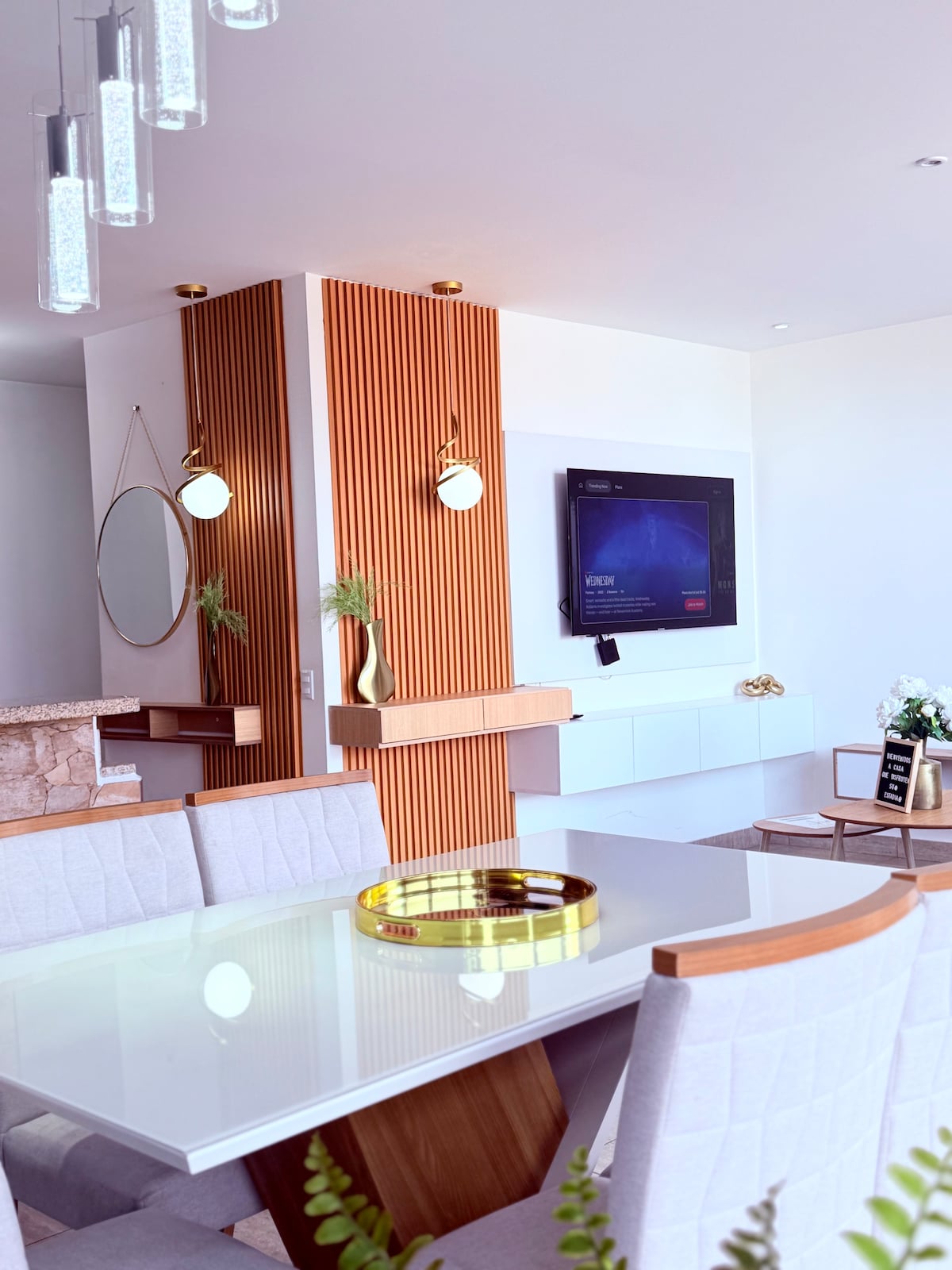 Copropriété moderne, entièrement équipée, dispose d'appareils électroménagers, Wi-Fi, climatisation dans tout l'appartement, dressing, 2 salles de bains complètes, nous avons une télévision intelligente. Netflix pour votre séjour confortable et agréable, situé dans l'une des zones les plus exclusives de la ville. Il dispose de son propre parking, d'espaces sociaux, d'une salle de sport, d'une piscine, d'un cinéma en plein air, d'un espace feu de camp, d'un terrain de volleyball, d'un mur d'escalade, d'une aire de jeux, d'un rooftop, d'un salon de travail. C'est un endroit accessible et sûr.