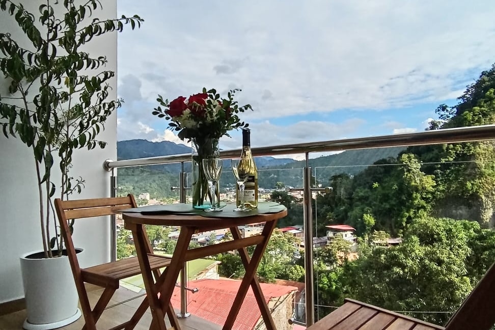 Modern and cozy apartment in La Merced, just 3 minutes from downtown. Fast Wi-Fi, a fully equipped kitchen, a Smart TV, and everything you need to feel at home. You'll enjoy the views! Highland Coffee is 3 blocks away, and the "Selva Central" Bus Terminal is 2 blocks away. We have a water tank, so the water service won't be interrupted. We have Netflix, YouTube, FireTV, pots, kettle, glasses, plates, orange juicer, bedside tables and closets, electric shower, towels, toilet paper, soap, etc.