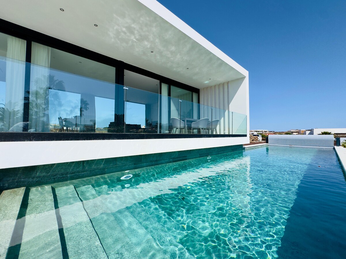 Maison minimaliste avec vue sur le volcan et piscine chauffée