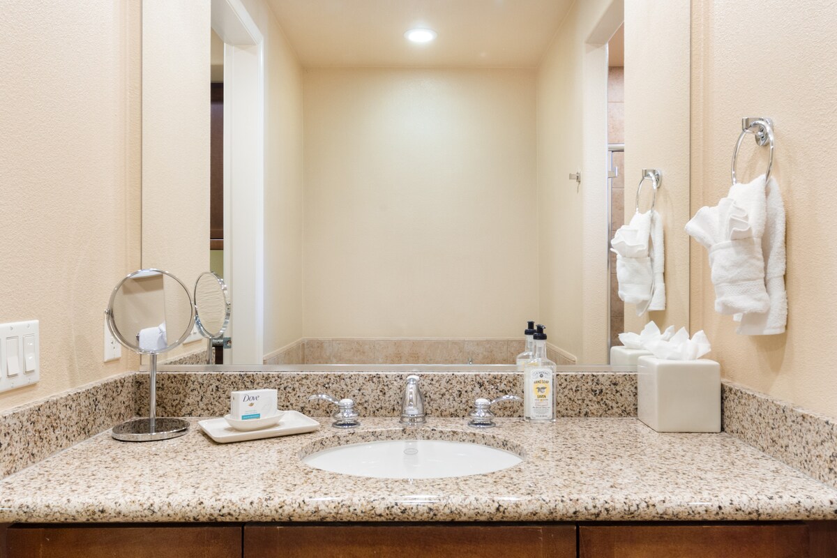 Notre suite studio avec lit King Size Legacy Palms est un espace récemment rénové, spacieux et lumineux avec une ambiance moderne du désert californien. Les portes-fenêtres s'ouvrent sur un balcon privé surplombant le parc luxuriant de la villa et les fontaines. La suite dispose d'une télévision intelligente avec câble haut de gamme, d'un mini-réfrigérateur, d'un micro-ondes et d'une cafetière Keurig ainsi que d'une salle de bain attenante avec baignoire et douche séparée. Le terrain communautaire dispose de 12 piscines et spas chauffés, d'une salle de sport, de hamacs, de grils et bien plus encore !
