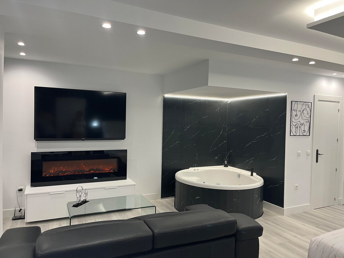 Fantastique appartement suite avec jacuzzi situé dans un immeuble résidentiel dans le quartier calme de Cotolino à 500 mètres de la plage de Brazomar. Sa distribution est un loft moderne, dans lequel se trouve un grand jacuzzi, une cheminée électrique, une télévision de 65 pouces, un canapé confort, un grand lit king size de 180 x 200. Il dispose également d'une salle de bains indépendante avec douche à l'italienne et d'une cuisine. Une suite de luxe spectaculaire avec jacuzzi conçue pour les séjours en couple, dans un espace de qualité supérieure.