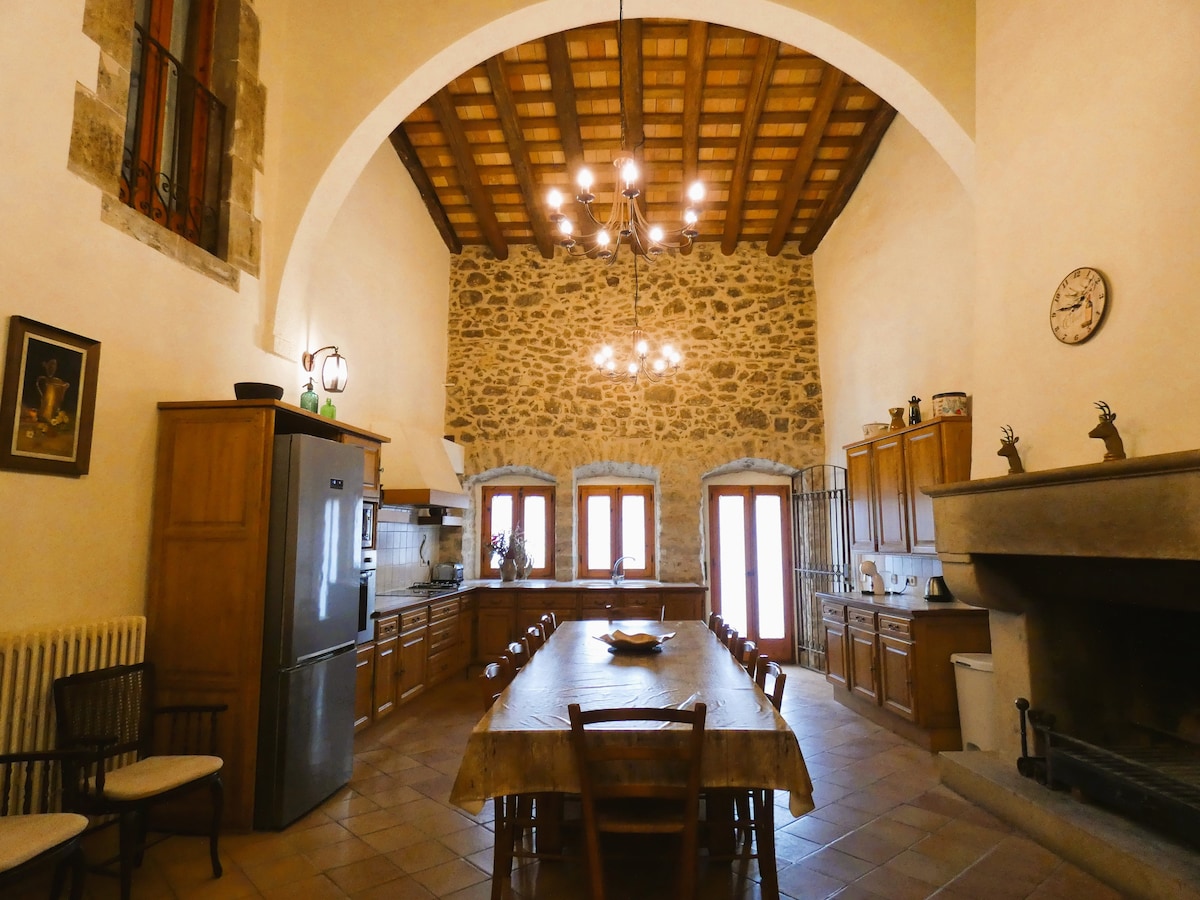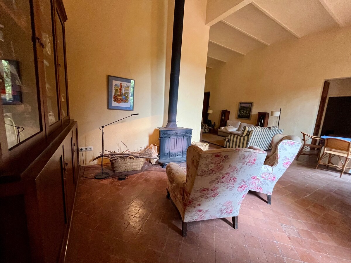 Casa Rural de pueblo con alma en finca familiar de 6000 m² que tiene 4 viviendas. Piscina y jardín COMPARTIDOS, huerto y naturaleza 600m2. Aquí he pasado mis veranos desde niña; ahora la abrimos a nuevos huéspedes. Estaréis en la 1ª planta de la casa con cocina de 40m², Salón de 50m2 con chimenea, terraza de 60m² rodeada de verde naturaleza, mesa para 14 comensales, 3 suites con baño privado, colchones premium y lencería nueva. Calma, espacio y confort cerca de la Costa Brava, Monells, Pals...