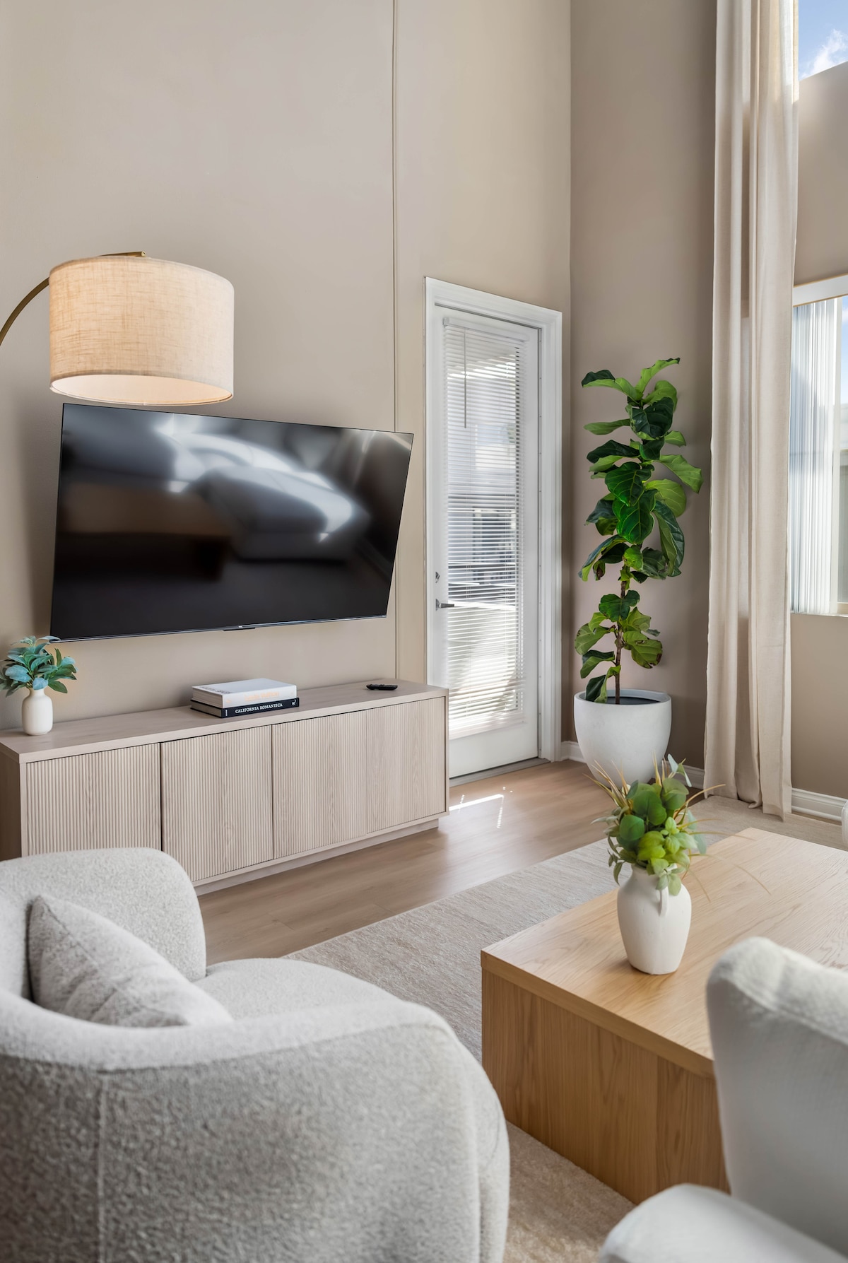 Nothing less than a SPECTACULAR, private, serene apartment HOME. KING Bed. Sleeps 2 comfortably. Sleeping in couch is optional. Full shower/tub. Approximately 725 sq. ft. A 65” Smart TV in the living room. In unit Washer/Dryer (detergent). Full kitchen with everything you need for a short or long stay. Refrigerator with ice maker. FAST WiFi. Shared pool, jacuzzi and gym. Completely sanitized and clean. One assigned parking space. Please come in peace or don’t come at all. Enjoy