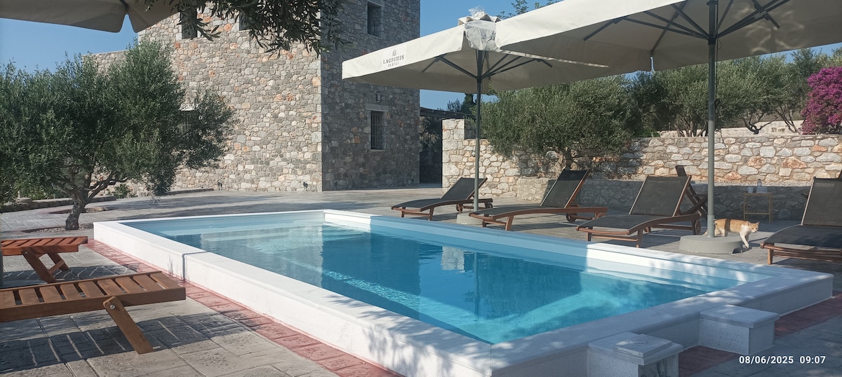 Dandy Villas Mani | Maison ancienne avec tour | Cheminée | Piscine