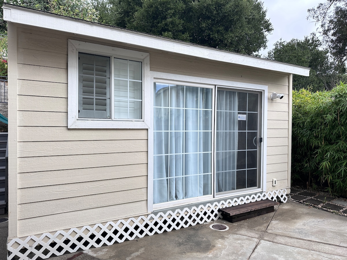 Toute la région de la baie de San Francisco à portée de main... et juste devant votre fenêtre ! Ce studio privé niché dans les contreforts d'Oakland est le point de départ idéal pour des aventures. À 9 minutes en voiture, vous pouvez prendre le train pour San Francisco. Le Colisée et les séquoias sont à quelques minutes, tout comme de nombreuses autres attractions*. Vous serez accueilli à la maison dans un lit Cal King confortable et une vue sereine sur le jardin. Profitez d'un café/thé pendant que vous vous installez à la table, et notre wifi haut débit vous couvre. Vous avez un véhicule électrique ? Chargez-le au niveau 2 pendant la nuit (J1772) !