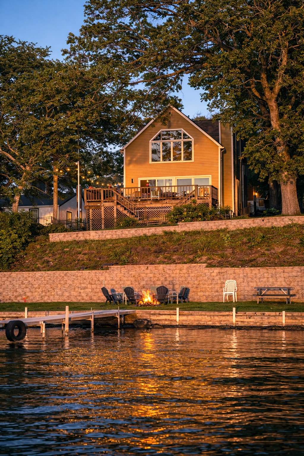 Bienvenue à bord de la retraite du second ! Unique et mignonne maison de lac nautique 2 lits/2 salles de bain a les meilleures vues sur le Chain O' Lakes. Laissez-vous émerveiller par la terrasse en bois avec vue sur le lac dans le jardin, et regardez les couchers de soleil tomber sur la baie et colorer le ciel. Le patio arrière est un endroit idéal pour se détendre, se divertir et se relaxer. Pêchez ou amarrez votre bateau à notre jetée si nécessaire. Il y a un jacuzzi pour 4-5 personnes sur la terrasse arrière pour vous détendre et vous relaxer (Jacuzzi inclus dans le prix de cette propriété).