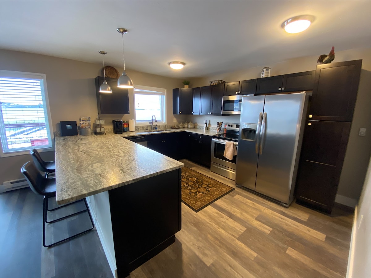 Venez profiter de la vue imprenable depuis notre appartement élégamment meublé ! L'espace de vie est magnifique et la vue sur le lac et les montagnes est ce pour quoi vous venez ici ! La chambre principale dispose d'un nouveau lit king size, d'un placard généreux et d'une salle de bain attenante. La seconde chambre possède deux nouveaux lits jumeaux. Les autres équipements comprennent une cuisine complète, un barbecue, une table de hockey sur air, une place de parking, une salle de sport partagée, etc. Je vous promets que vous ne voudrez plus partir !
