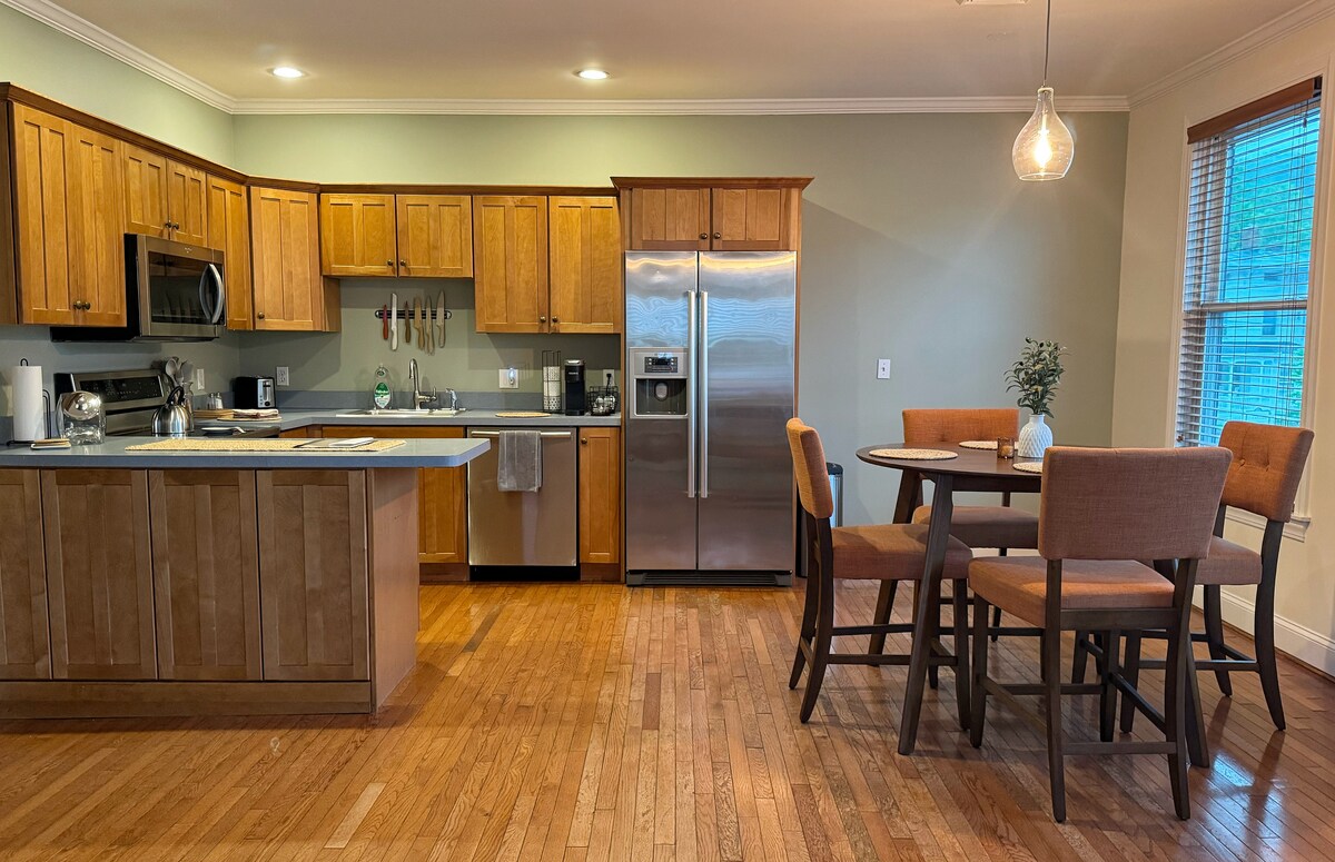 Notre maison de 3 chambres récemment rénovée offre un séjour confortable et commode. Idéalement situé avec un accès facile aux épiceries, aux centres commerciaux, aux hôpitaux et aux parcs, c'est un point de départ idéal pour votre voyage. Notre maison dispose d'un garage pour 2 voitures, d'un grand parking, d'une cuisine et d'une salle de bain impeccables, d'un mini bar à café, d'ustensiles de cuisine, d'une connexion Wi-Fi gratuite et d'un lave-linge/sèche-linge. Restez productif avec notre espace de travail dédié et détendez-vous dans nos chambres spacieuses. Réservez dès maintenant pour une expérience loin de chez vous !