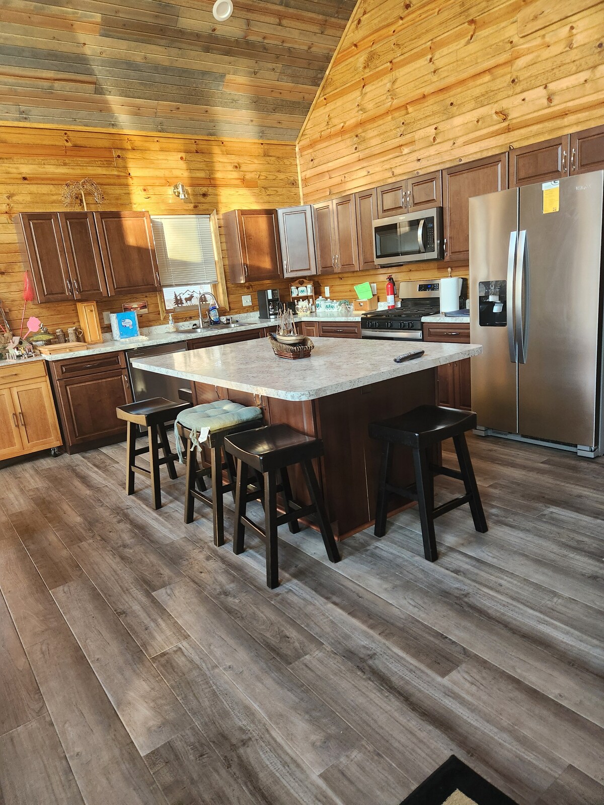 ●Quelques nouveaux ajouts récents ● * Jacuzzi luxueux dans les sources chaudes * ~~~~~3 radiateurs de patio ~~~~~~ ◇Cuisine extérieure complète◇ *Deux fours à pizza 9 traîneaux à neige assortis Cabane décorée avec des tables de jeux, un bar, un bar pour le petit déjeuner, une cuisine avec tous les équipements, 5 téléviseurs (dont un grand écran 75"). *Il y a une grande terrasse * pavillon couvert * Foyer au bois * Foyer au gaz * deux radiateurs de patio. Beaucoup de bois de chauffage et de gaz LP fournis. Profitez de l'extérieur même s'il fait un peu froid. Accès à la rivière Chippewa...